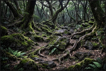 지면은 평평하지 않고 곳곳에 움푹 파인 공간이나 돌출된 바위가 많으며, 나무 뿌리는 땅속이 아닌 지표면 위로 드러난 경우가 많습니다. 그래서 걷는 것 자체가 쉽지 않고, 발을 헛디디기 쉬운 환경이 만들어집니다. 또한 나무들이 매우 촘촘하게 자라 있어 길이 명확하게 보이지 않는 경우가 많습니다. 이 때문에 처음에는 괜찮다고 느끼다가도 어느 순간 방향을 잃고 같은 자리를 맴도는 느낌을 받을 수 있습니다.